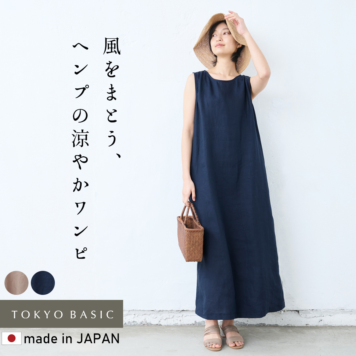 ワンピース レディース ノースリーブ 40代 50代 40番手 麻100% (ヘンプ ) ノースリーブワンピース 日本製 速乾性 レディースワンピース リゾートワンピース