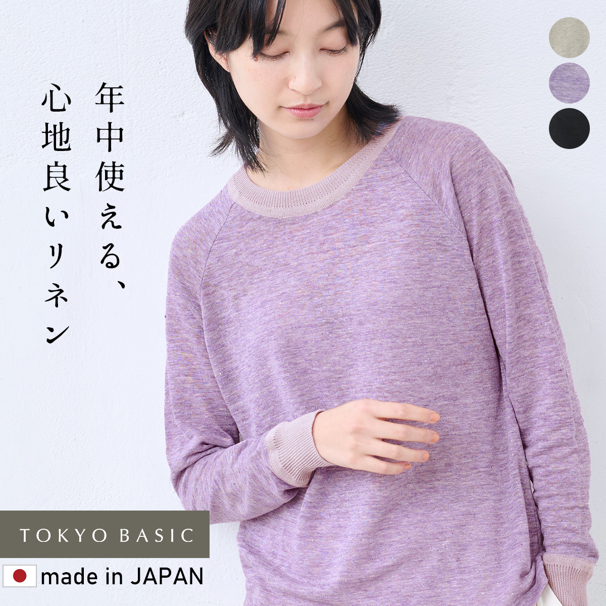 カットソー ロンt tシャツ レディース 長袖tシャツ 40代 50代 日本製 プレミアム リネン100% リブ使い ラグラン Tシャツ