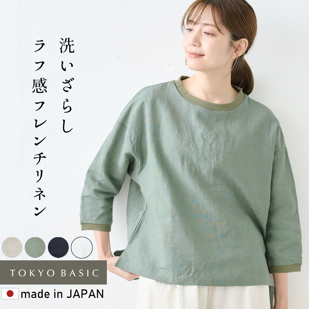 リネンシャツ ブラウス シャツ レディース 春服 40代 50代 日本製 40番手 フレンチリネン100% リブ使い 八分袖 ブラウス