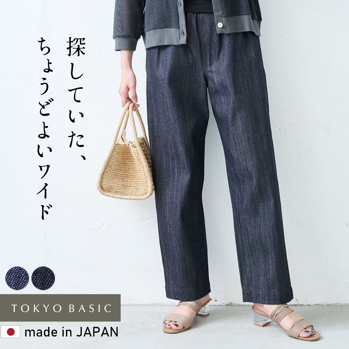 デニム ジーンズ デニムパンツ ワイドデニム ジーンズ レディース ウエストゴム 40代 50代 日本製 コットン100% ジャパンデニム セミワイドパンツ