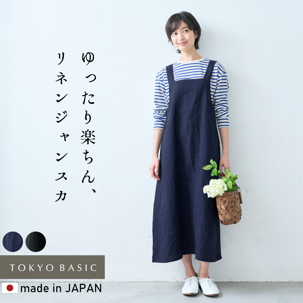 ワンピース レディース リネン 40代 50代 40番手 フレンチリネン100% エプロン ジャンパースカート 日本製 レディースワンピース ジャンスカ