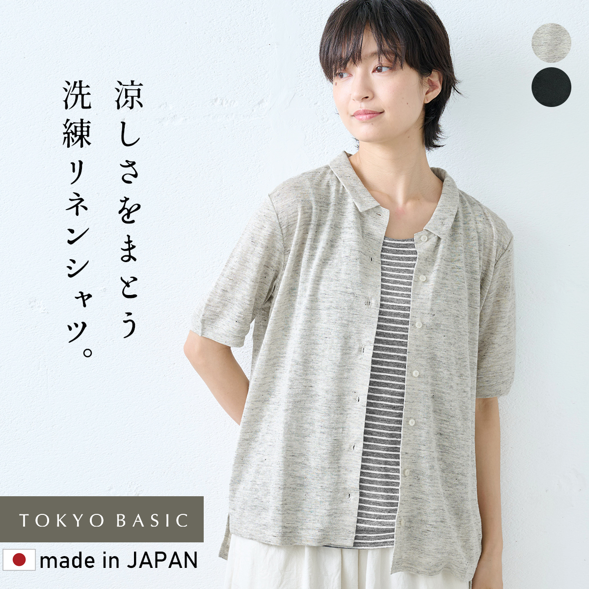 リネンシャツ シャツ レディース トップス シアーシャツ 40代 50代 日本製 プレミアム リネン100% 襟付き 五分袖 シャツ 速乾 抗菌