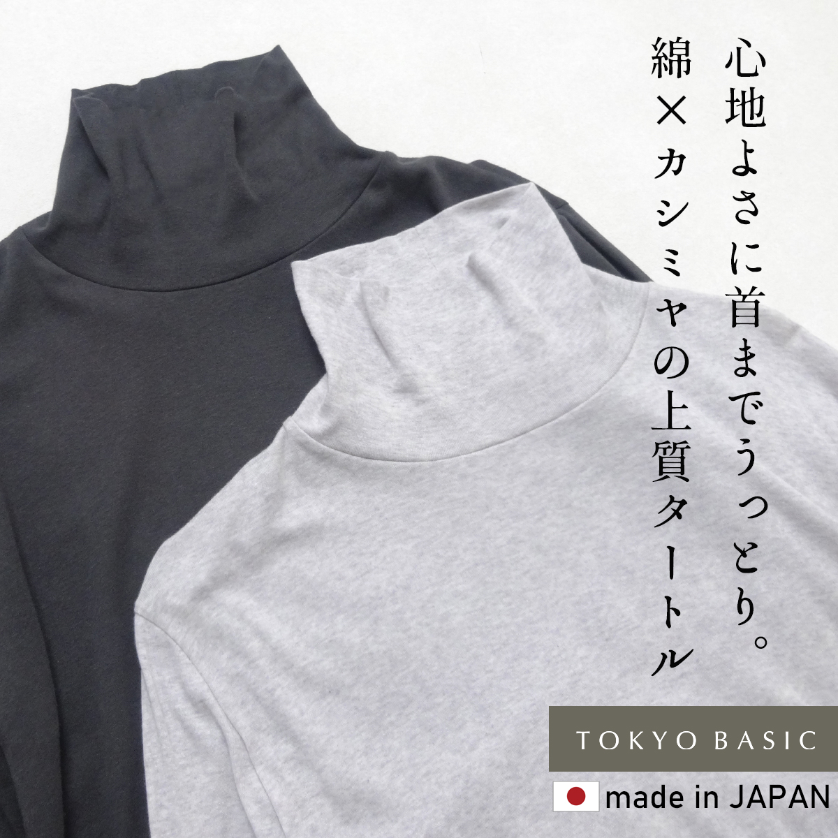 カットソー 長袖 タートルネック 薄手 日本製 綿 カシミヤ フライス タートルネック