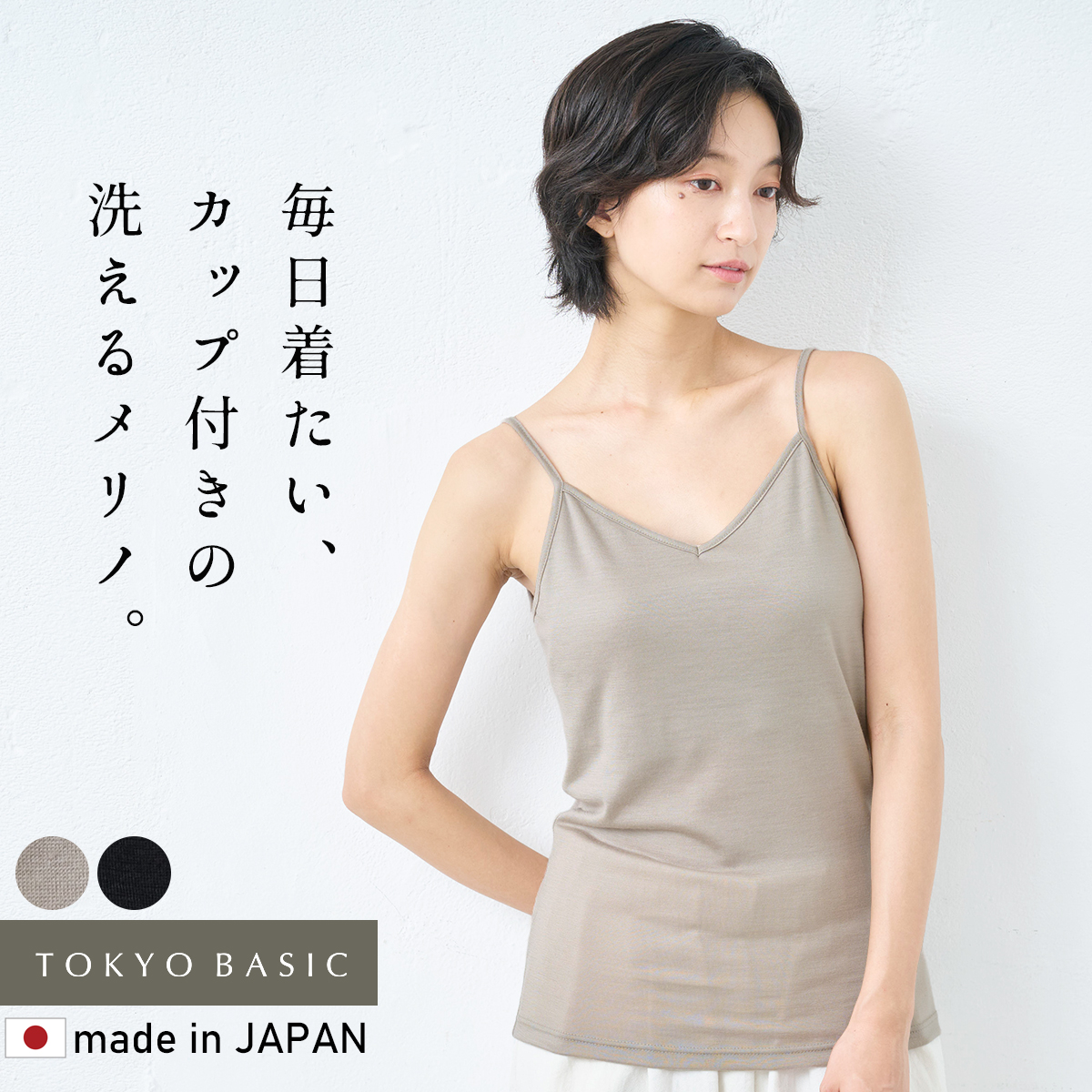洗えるウール レディース インナー ウォッシャブル メリノウール100% カップ付き キャミソール 日本製 薄手 オールシーズン