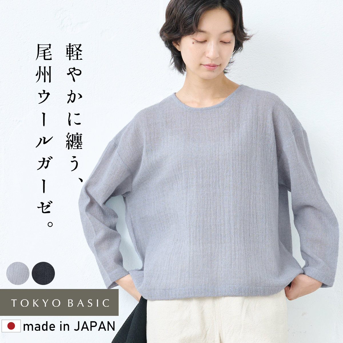 軽やかで柔らかく、ほんのり透ける上質なウール100%ガーゼのワイドプルオーバー。日本有数の産地・尾州ウールを使用し、薄手でシアーな透け感が魅力です。空気を含むように軽く暖かく、季節の変わり目から冬の重ね着まで快適。ゆったりとしたドロップショルダーで、大人のナチュラルスタイルに。安心の日本製。