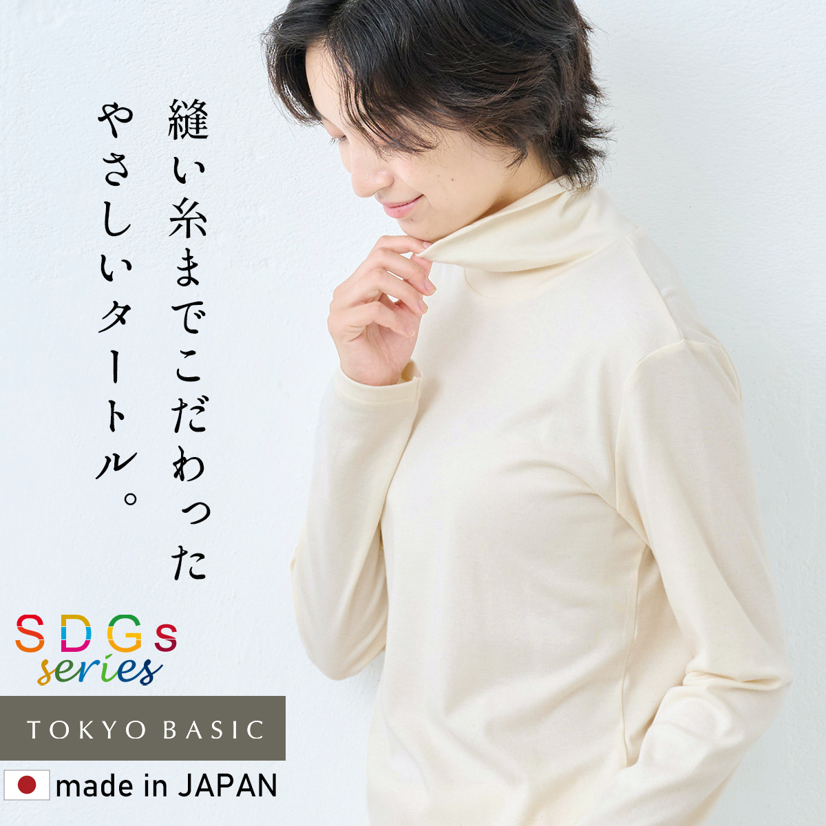 タートルネック レディース 長袖 カットソー 日本製 40代 50代 無染色 オーガニックコットン タートル