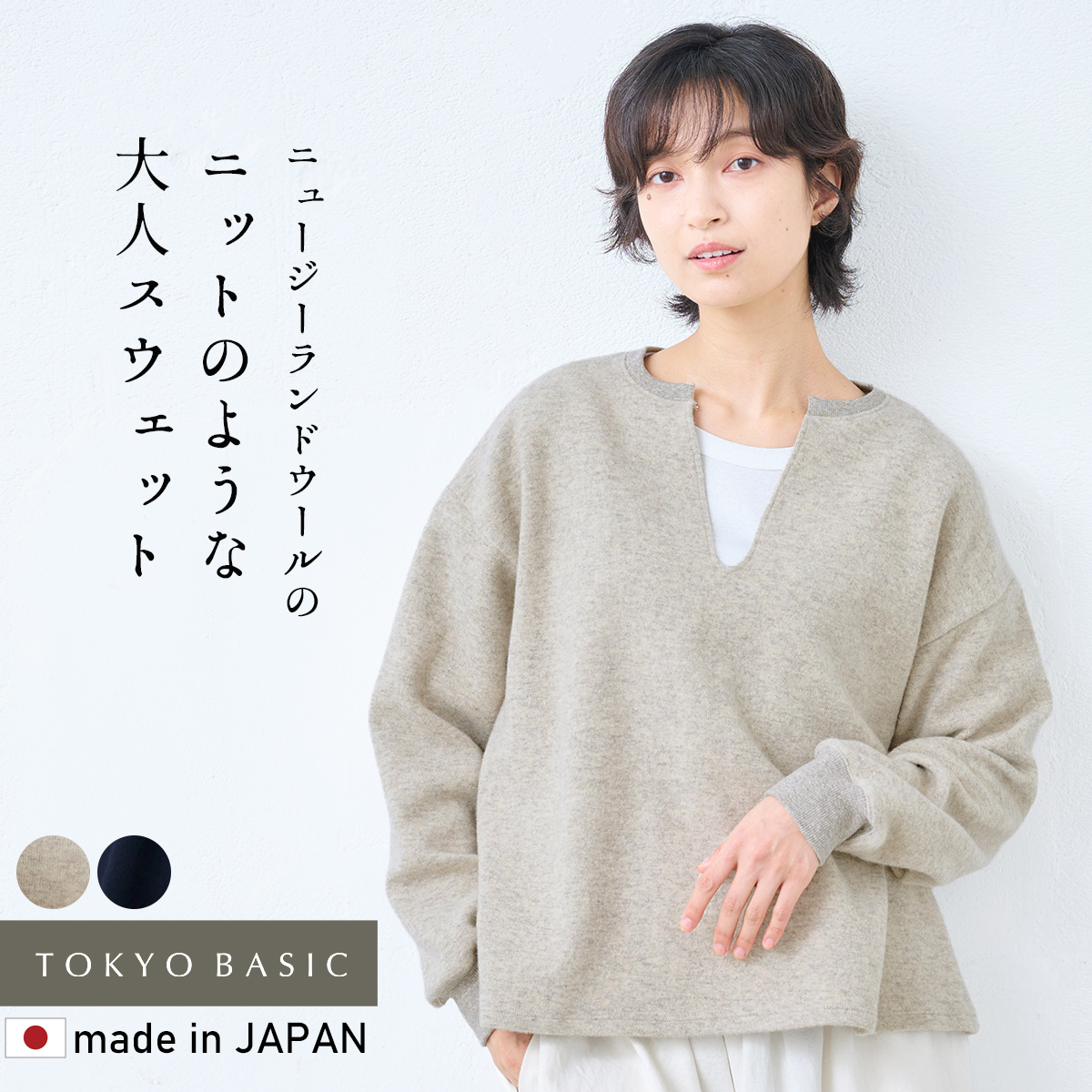 トレーナー レディース 長袖 スウェット ニュージーランドウールコットン キーネック プルオーバー 日本製 40代 50代