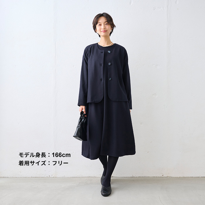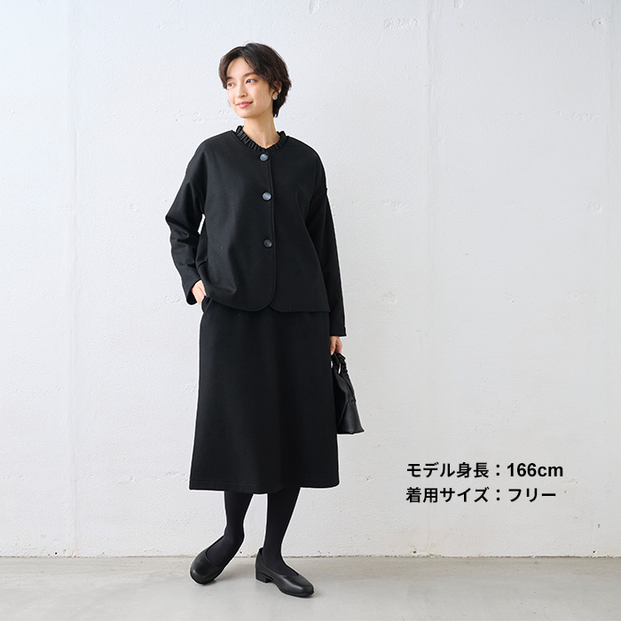ノーカラージャケット 卒業式 母 服装 フォーマル 40代 50代 日本製 圧縮ウール100% 裏地付き ノーカラー ジャケット