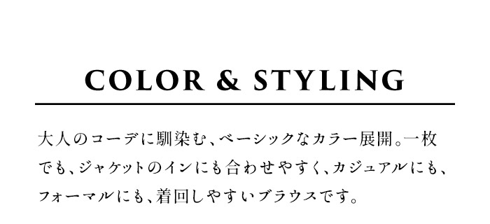 コットン100%素材を使用した、二枚仕立てのシフォンブラウス。表地は自然な表情のあるシフォン生地で、軽やかで上品な透け感が魅力。内側にはなめらかなコットンカットソーを重ねた裏地付き仕様のため、透けにくく、一枚で安心して着用できます。首元は程よく詰まったデザインで、きちんと感のある印象に。ネックと袖口のギャザーが、シンプルな中にやわらかな表情を添えます。通勤やオフィス、卒業式・入学式などのセレモニーにも使える、40代・50代、ママ世代にもおすすめの上品なブラウスです。