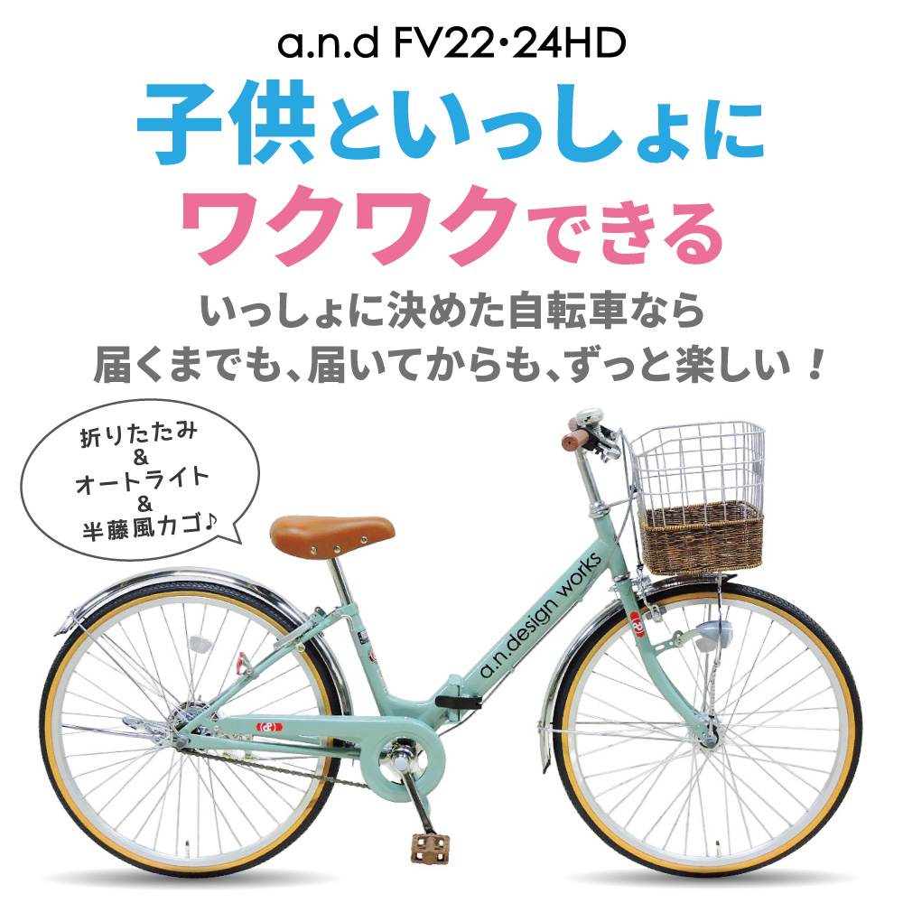 | 子供だってもっとおしゃれにかわいく♪ 子供用折りたたみ自転車というアンドからの新提案。低学年から高学年まで乗車可能な設計をしています。 20インチ、22インチ、24インチと幅広く取り揃えました。小学生を満喫しよう! |