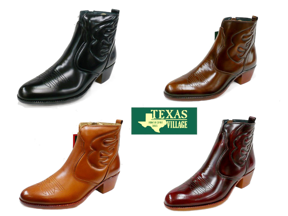 TEXAS VILLAGE テキサスヴィレッジ 5521 メンズ ウエスタンブーツ 本革 ショート丈 ファスナー付
