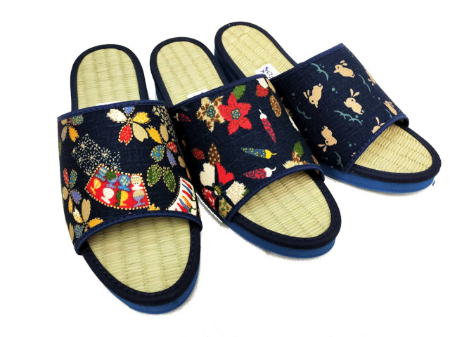 日本製 藍染 本たたみ 民芸調 サンダル スリッパ い草 女性用