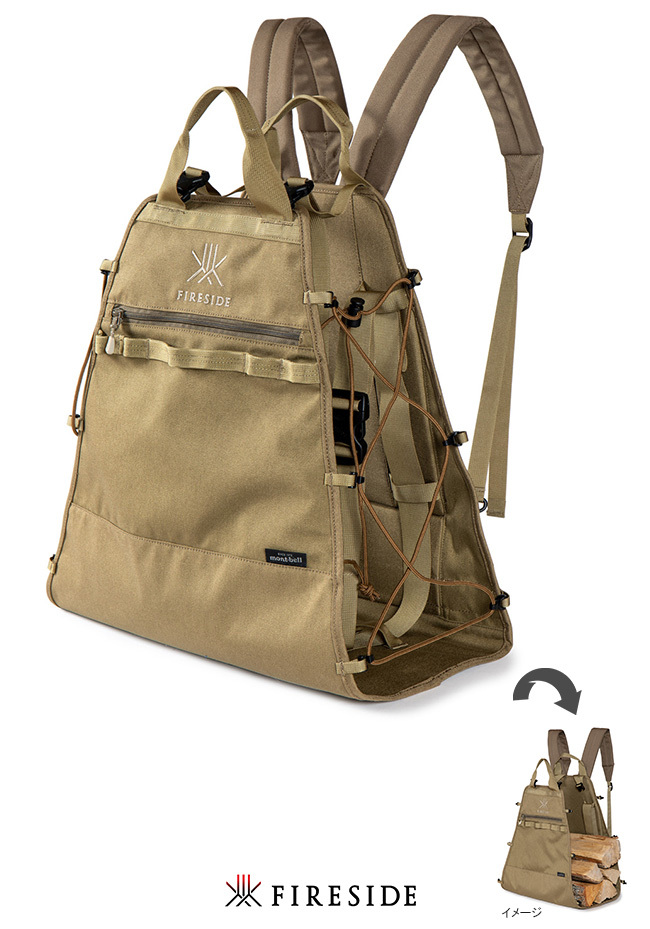 薪運びに キャンプ道具やギアのリュックとして モンベル共同開発商品