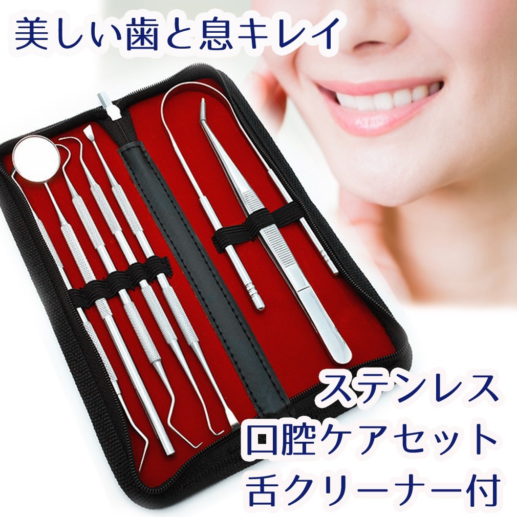 歯用ツール 口腔ケアセット 舌クリーナー付 7点セット 歯石取り 歯垢取り 口臭防止 収納ケース付 レビュー投稿で全国送料無料