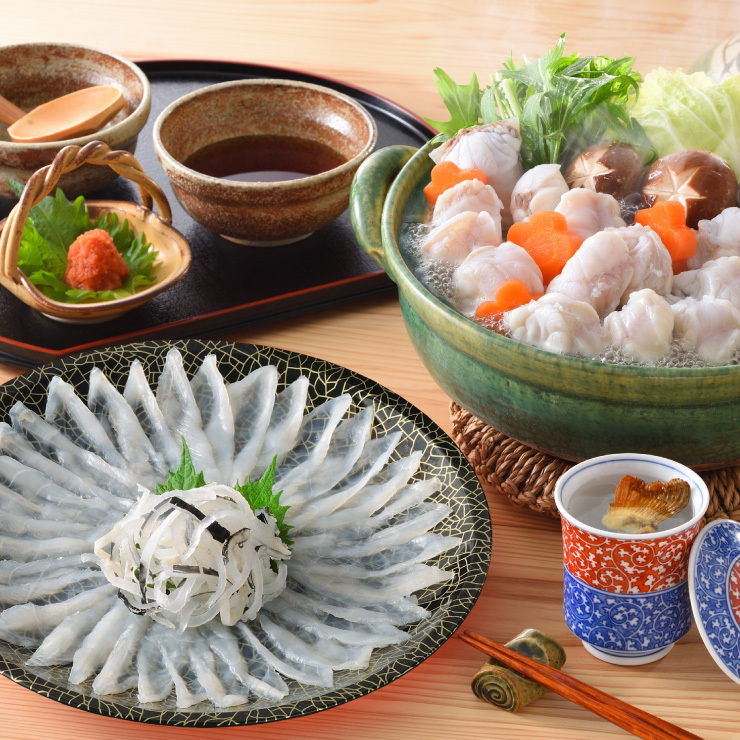 | 原材料 | まふぐ刺身・ちり(山口県)、とらふぐ皮刺・焼ひれ(国産)、鍋のつゆ(醤油(大豆・小麦を含む、国内製造)、砂糖、食塩、魚介エキス/調味料(アミノ酸等))、ぽん酢(しょうゆ(大豆・小麦を含む、国内製造)、醸造酢、発酵調味料、砂糖、橙酢/アルコール、調味料(アミノ酸等)、カラメル色素)、もみじおろし(大根(国産)、唐辛子/酒精、モナスカス色素、増粘剤(グァーガム)、pH調整剤、グリシン) |