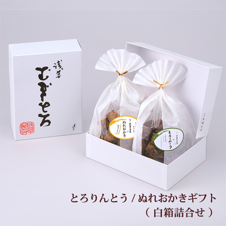 | 商品名 | 浅草むぎとろ お菓子 白箱詰合せ(とろりんとう・ぬれおかき) |