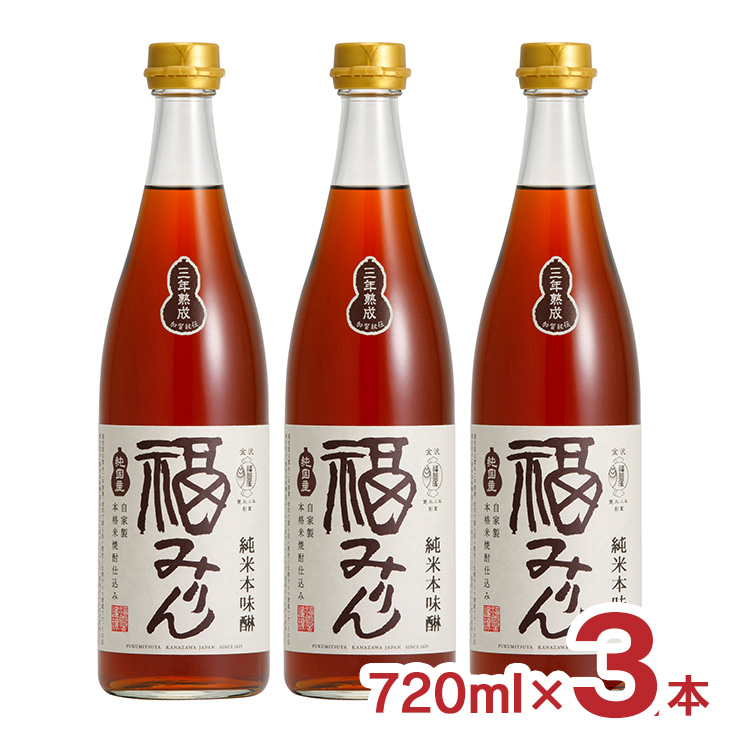 味醂 本味醂 熟成 福みりん 純米 本味醂 3年 三年熟成 720ml 3本 福光屋 送料無料