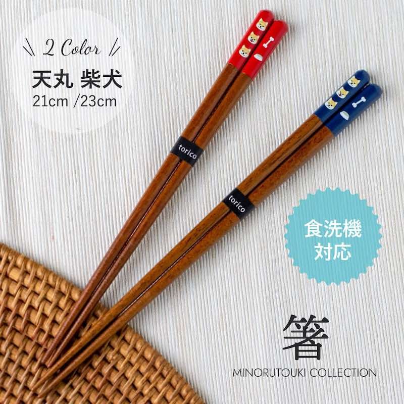 箸 天丸 柴犬 青 23cm 赤 21cm お箸 若狭の箸 天然木 おしゃれ 日本製 食洗機対応