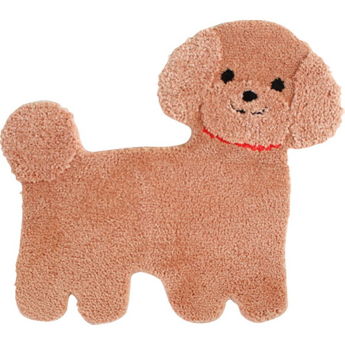 プードルは近年常に人気ランキング上位の大人気の犬種になります。人気の赤茶色のトイプードルをモデルにし、ふわふわの毛をポリエステル糸で表現、耳や口周り・しっぽの毛足を長くしました。ふわふわの毛にうもれる口や首輪も再現し、プードルのかわいさを引き立つようにしました。見るだけでほっと癒されるマットとして玄関、トイレなど色々な場所にお使いいただけます。