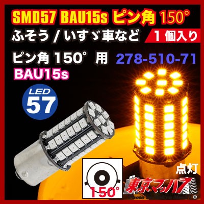 LED57 アンバー BAU15s ピン角150° DC8v-DC30v