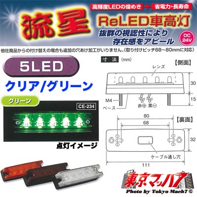 車高灯 トラック トラック用品 CE-234 流星Re 5LED 車高灯 グリーン