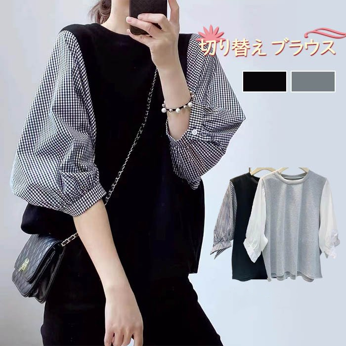 ブラウス 切り替え レイヤード風 カットソー 重ね着 プリーツ切替 カジュアル ドッキング トップス レディース 春 夏 Tシャツ チュニック ゆったり 大人気