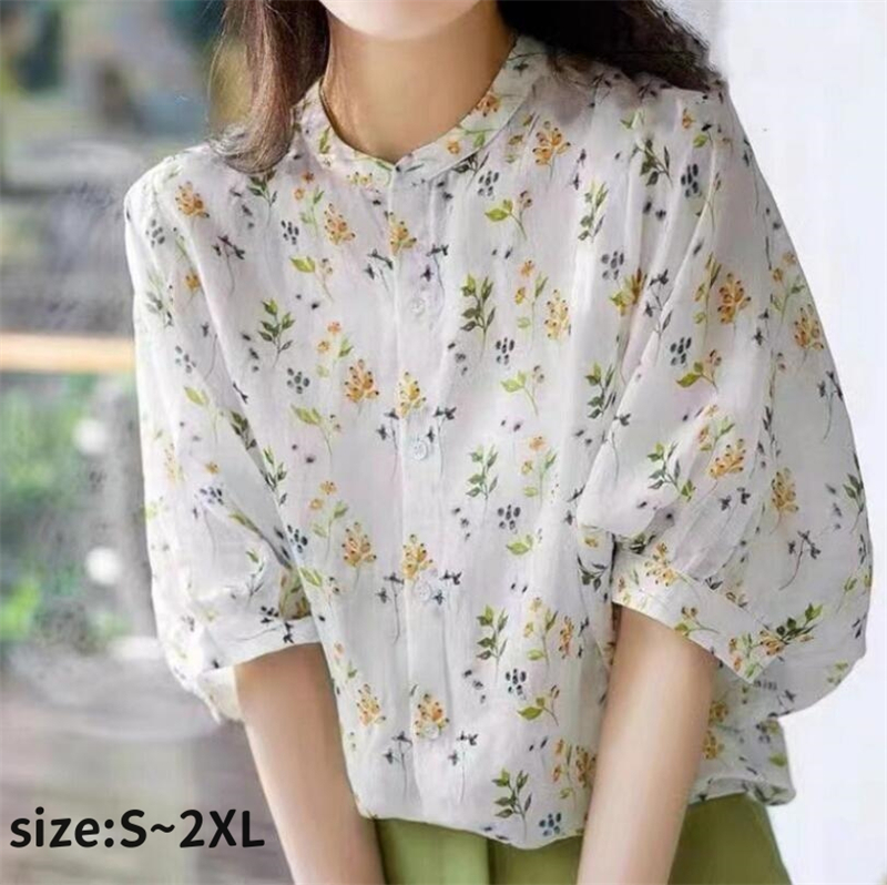 ブラウス レディース 半袖ブラウス 夏 花柄 オシャレブラウス パフスリーブトップス 大人 通勤OL ゆったりシャツ