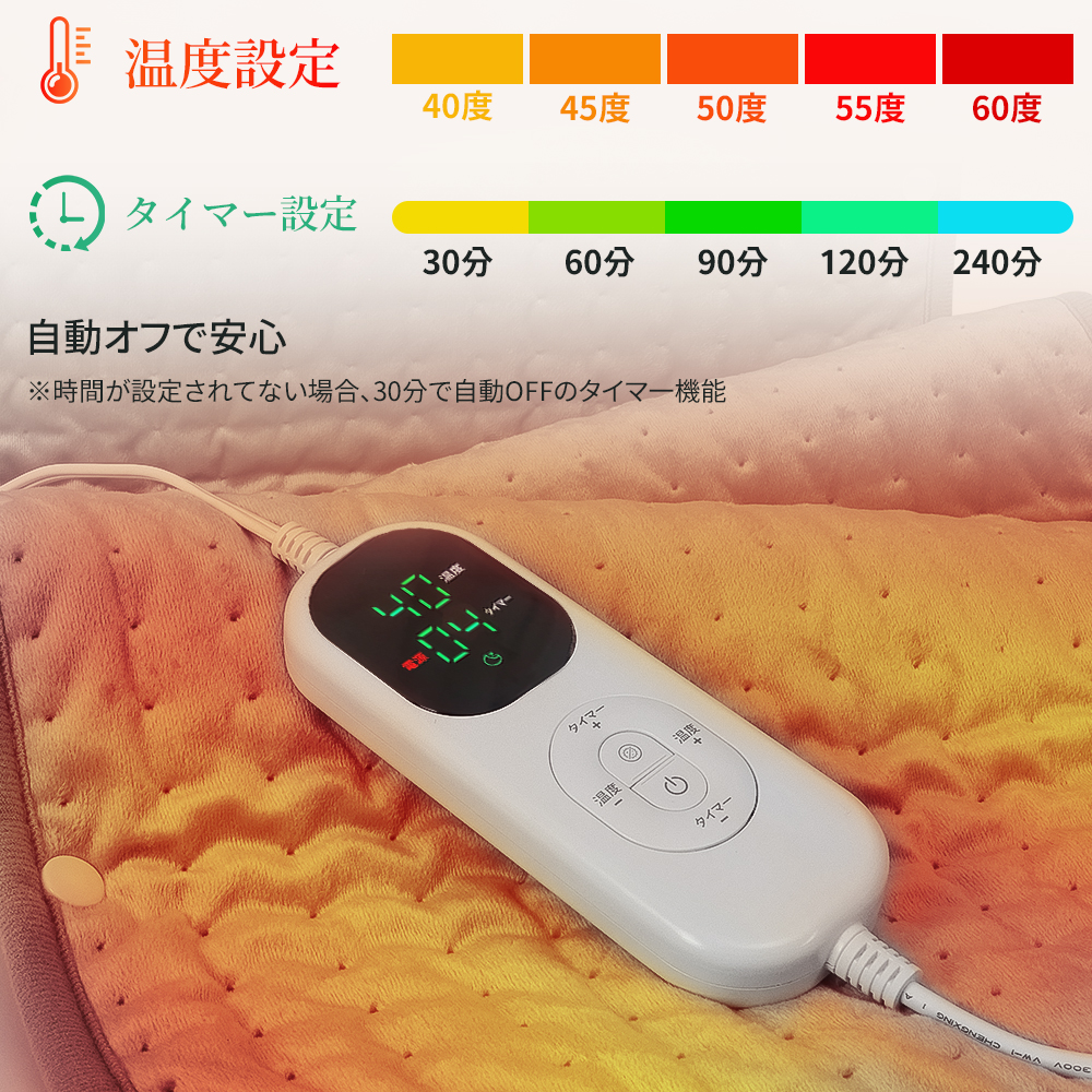 【在庫一掃!クーポン利用で3352円だけ】ホットマット 椅子 ヒーターマット コンセント式 タイマー 電気マット ロング 温度調節 一人用 洗える 足元暖房