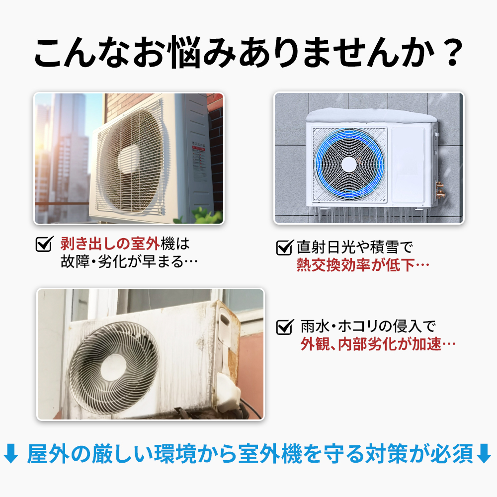 室外機 日よけ 雨 風 雪対策 ホコリよけ 遮熱保護 劣化防止 省エネ 防水 防塵取り外し不要 簡単脱着 家庭用 固定用ベルト付き 父の日 プレゼント