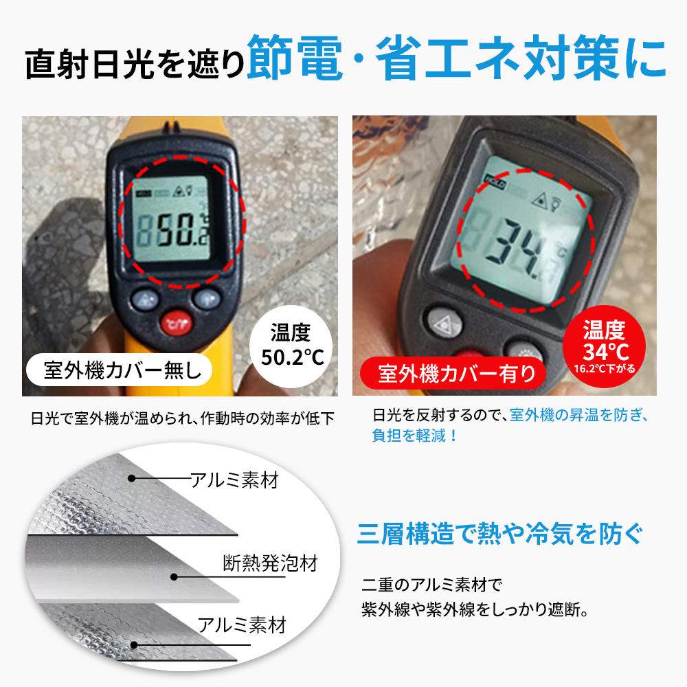 室外機カバー エアコン室外機カバー 室外機保護カバー アルミ箔素材 遮熱シート 室外機シート 日よけ 節電 遮熱パネル 防水 断熱