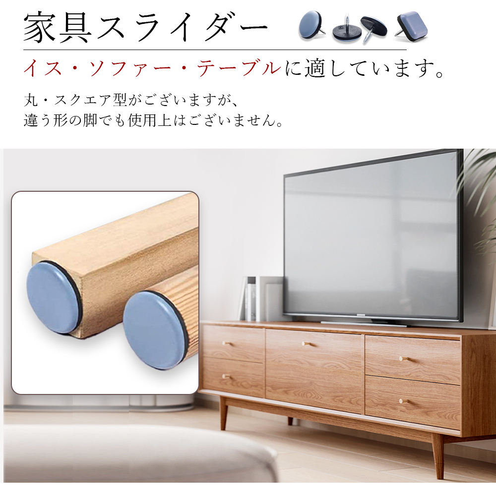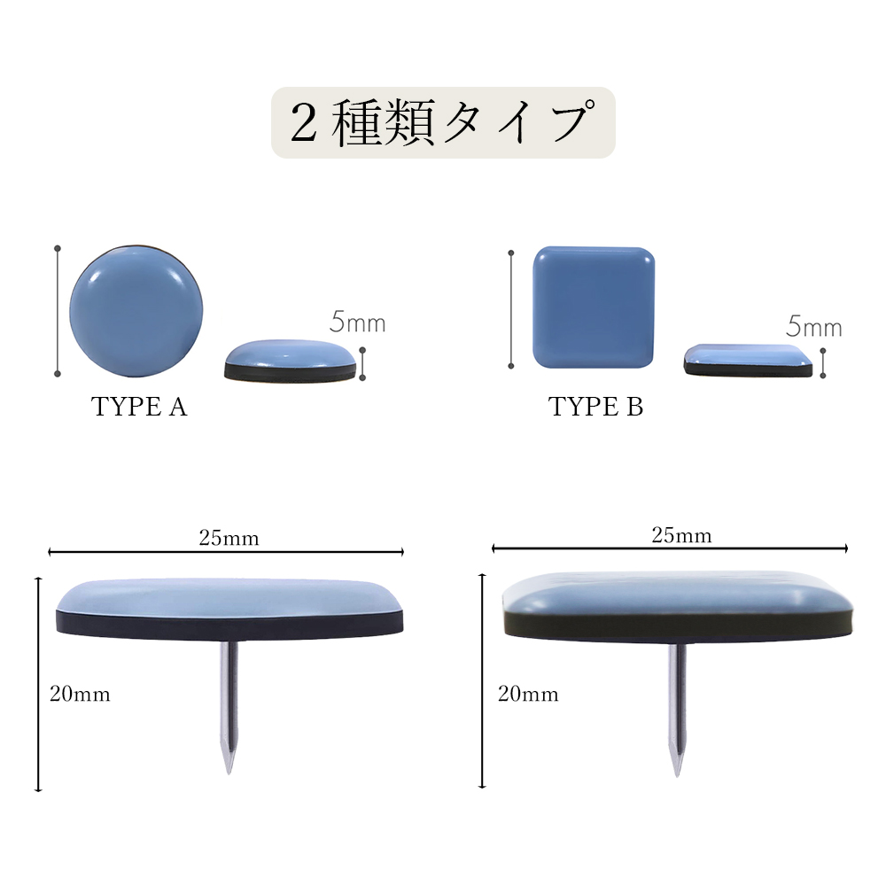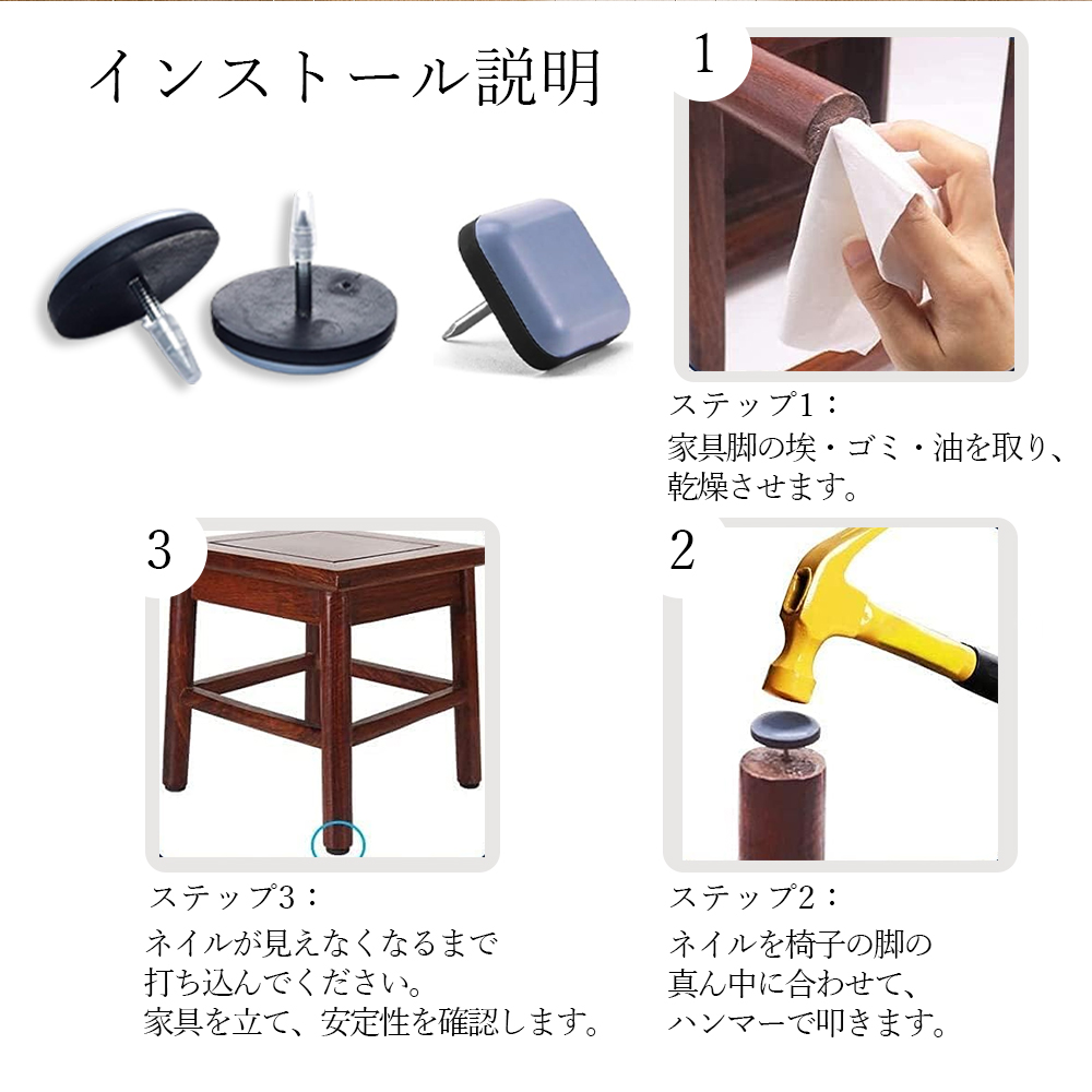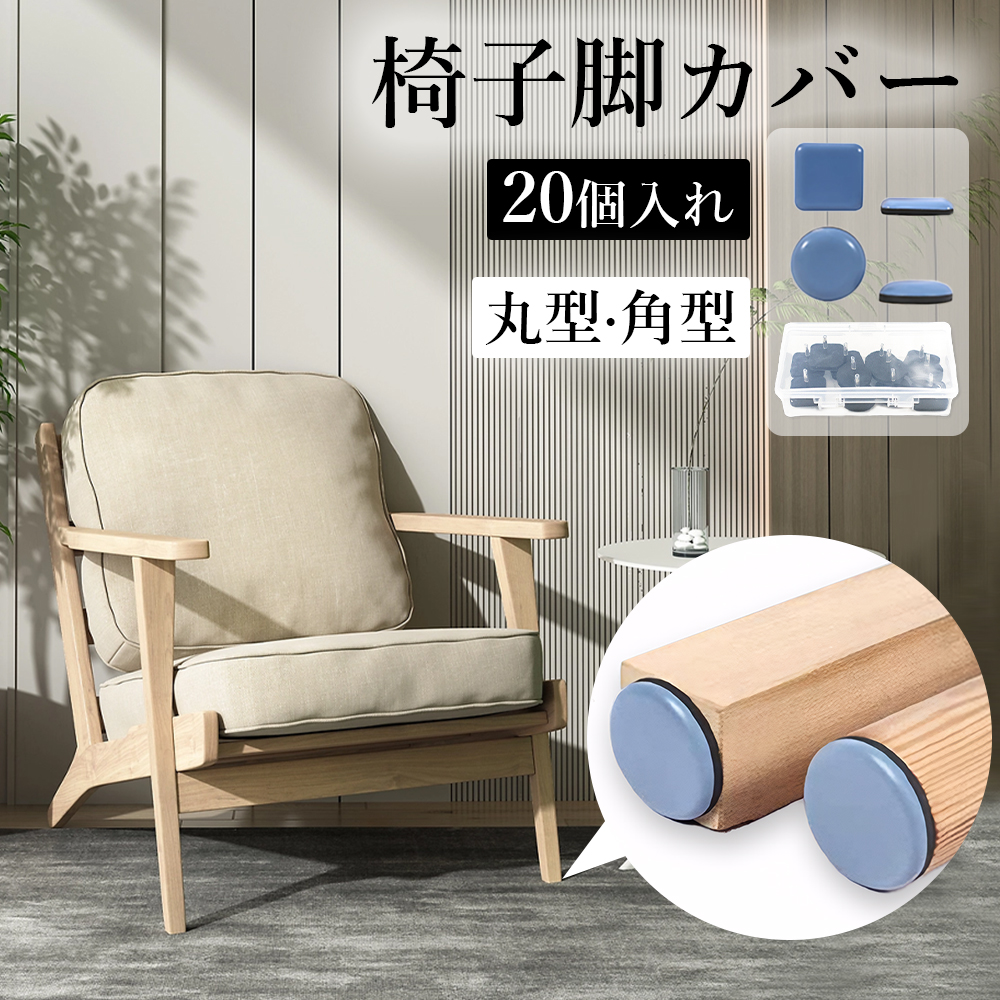【20個入れ・収納ケース付き】丸形 釘付き 椅子脚カバー 20個 脱げにくい 脚キャップ キズ防止 騒音防止 床 四角形 正方形 家具スライダ