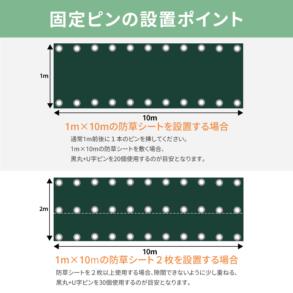 【U字ピン付き】防草シート 砂利 ピン 貼り方 防そうシート 除草シート 1m×10m 1枚組/2枚組/3枚組 1mX50m ロール 不織布 高耐久 雑草対策 雑草防止 農業園芸