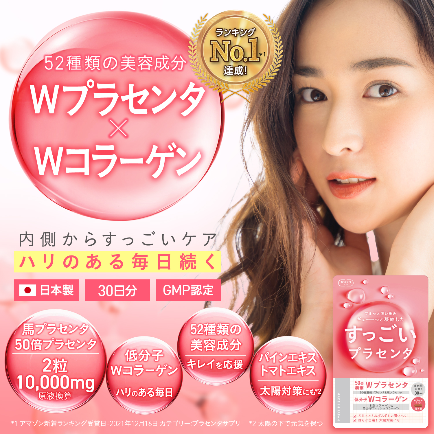 すっごい!プラセンタ 10,000mg 日本製 30日分 Wプラセンタ 50倍濃縮 プラセンタ 馬プラセンタ Wコラーゲン 52種美容成分