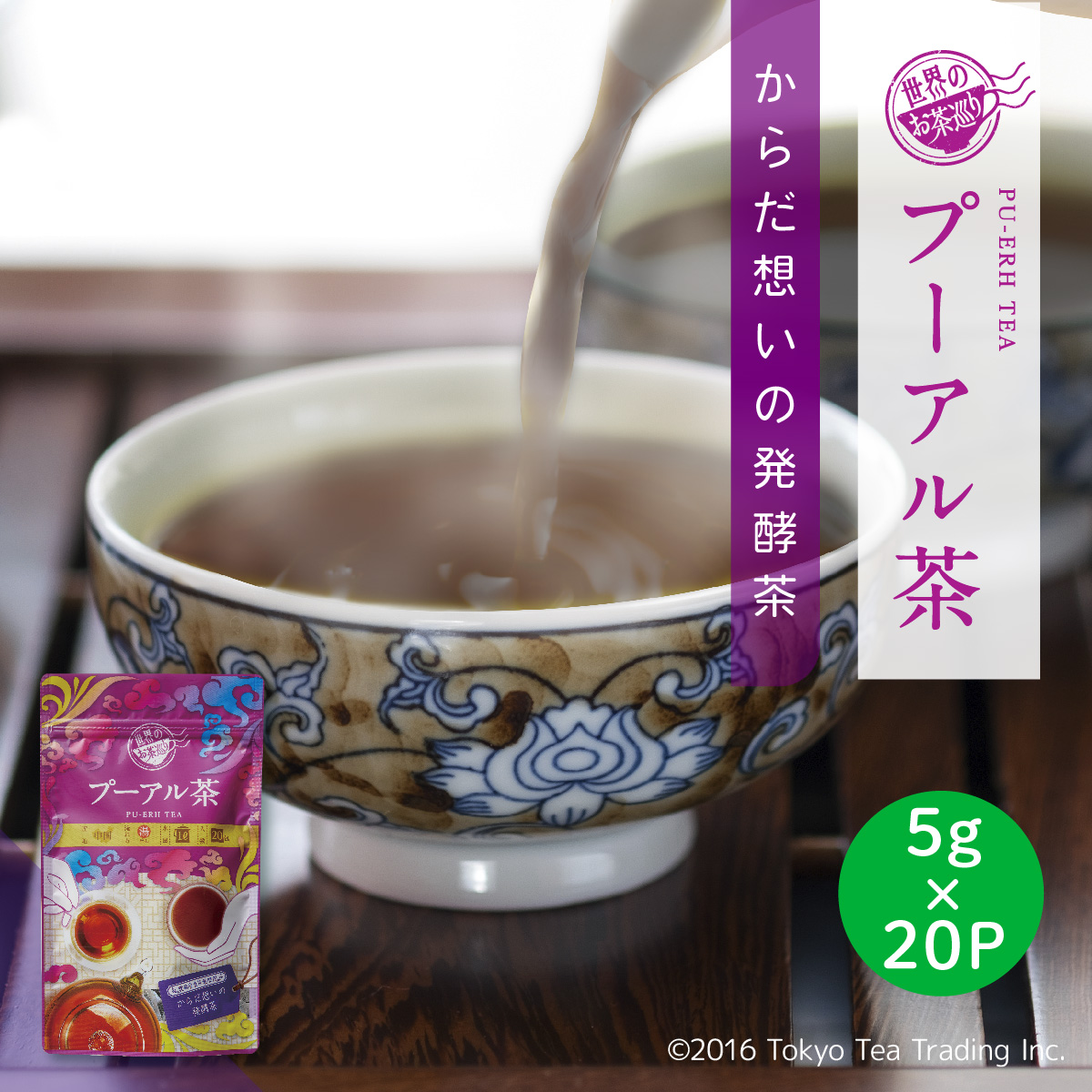 プーアル茶 お得用 ティーバッグ 5g×20包 お茶 中国茶 健康茶 ダイエット ジャグ&ペットボトル用 台湾茶 世界のお茶巡り