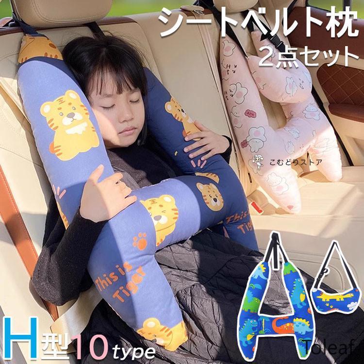 シートベルトクッション 子供用 H型シートベルト 2点セット ふわふわ カバー ワンタッチ取付簡単 お出かけ 位置調節 車用パッド 高さ調節可 頚部保護 ドライブ首保護 枕車の首枕 車用ステッカー 睡眠 カー用品 車座席用
