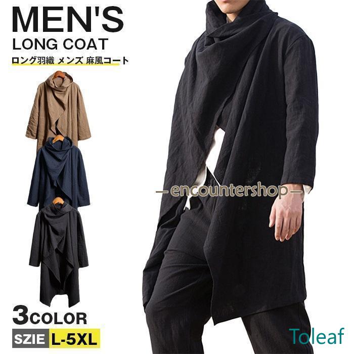 ロング羽織 メンズ ロングコート 長袖 綿麻風コート 麻風コート ジャケット