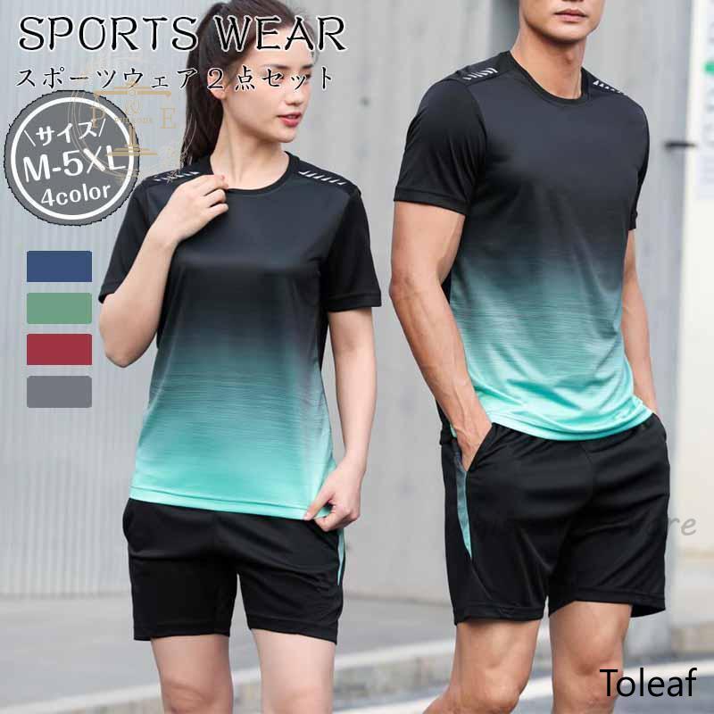 スポーツウェア メンズ セット 半袖 ランニングウェア ジム トレーニングウェア 上下セット ウォーキング 運動着 夏 薄手 吸汗速乾 軽量 部屋着