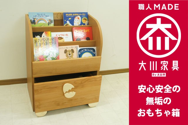可愛い おもちゃ箱付き絵本棚 収納ボックス 子供用 絵本ラック 子供家具 キッズ 木製 天然木 おしゃれ キャスター付き大川家具 子どもが使いやすい