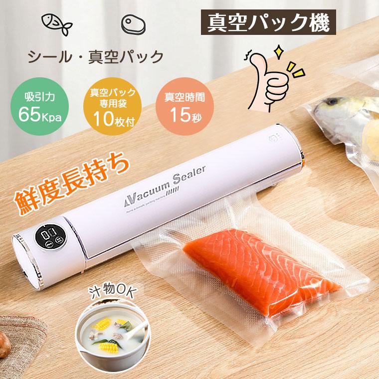 真空パック機 フードシーラー 小型 フードセーバー 65Kpa吸引力 自動脱気 肉 魚 乾燥物 汁気物 真空包装 鮮度保て 乾湿両用 10枚パック袋付 家庭 業務用