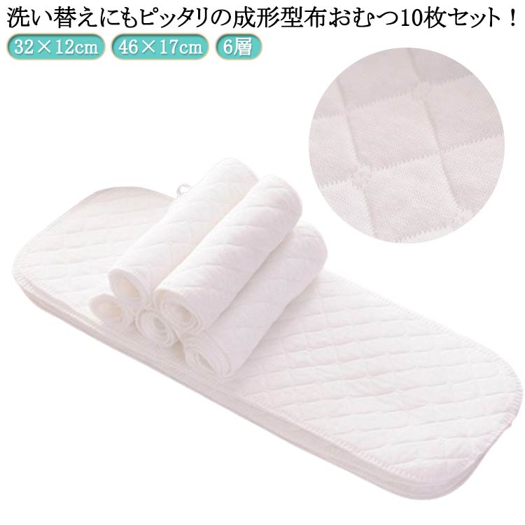 | 洗い替えにもピッタリの成形型布おむつ10枚セット! 布おむつの保育園や幼稚園の準備に! 6層生地なので吸収力がバツグンです! 布タイプだと必要な裁断や折り畳みが不要!成形型タイプで少しでも家事を楽ちんに♪ 柔らかな肌触りの上質なコットンを使用しており、デリケートなお子様の肌にも安心です。 | |