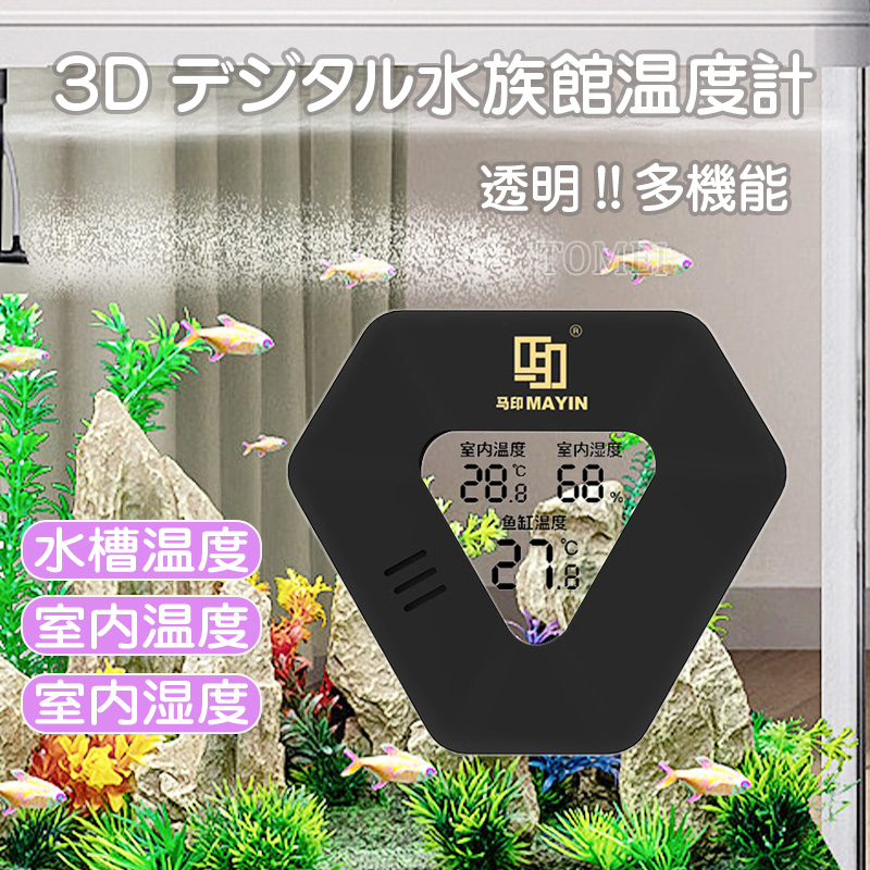 MAYIN マイン 水族館温度計 透明 3Dデジタル水温計 スティックオンタンク温度 透過液晶 電池式 両生類 爬虫類 ワイヤレスC / F おしゃれ 正確な読み取りを保証