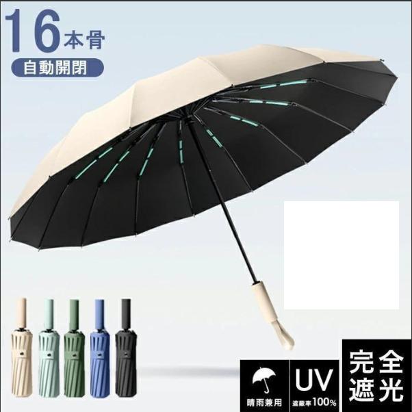 頑丈な16本骨日傘 折りたたみ 完全遮光 UVカット 折りたたみ傘 100% 遮光 レディース 自動開閉 雨傘 遮熱 強撥水 折り畳み傘 大きい