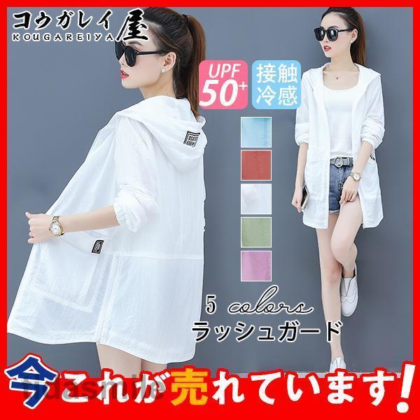 ラッシュガード レディース 夏用 ロング丈 ひんやり 涼しい 薄手 接触冷感 パーカー 長袖 フード付き 日焼け対策 水着 体型カバー 紫外線対策