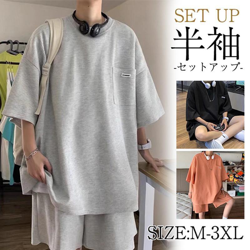 セットアップ メンズ 上下セット Tシャツ ハーフパンツ 夏 ショートパンツ 半袖Tシャツ スウェット ゆったり レイヤード ジャージ 運動着 部屋着