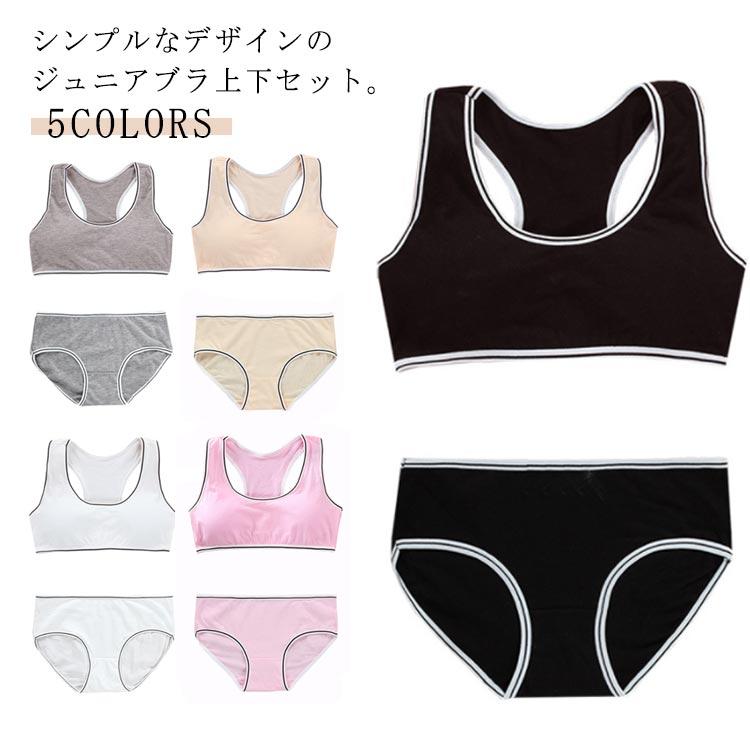 子供 ジュニア コットンインナー ブラトップ 女の子 ジュニアブラ 下着 中学生 上下セット セットアップ 綿 下着セット コットン スポーツブラ キ