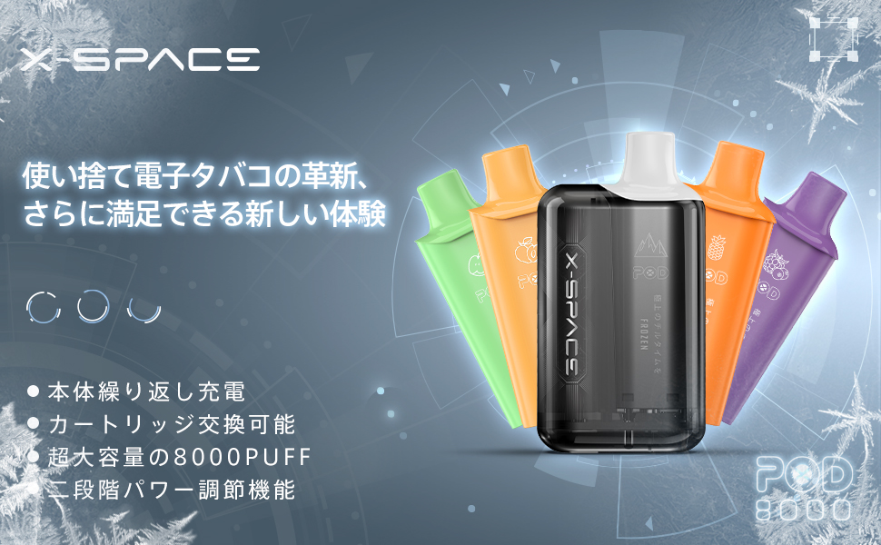 ・Type-C充電式、POD交換可能、煙量調節可能。