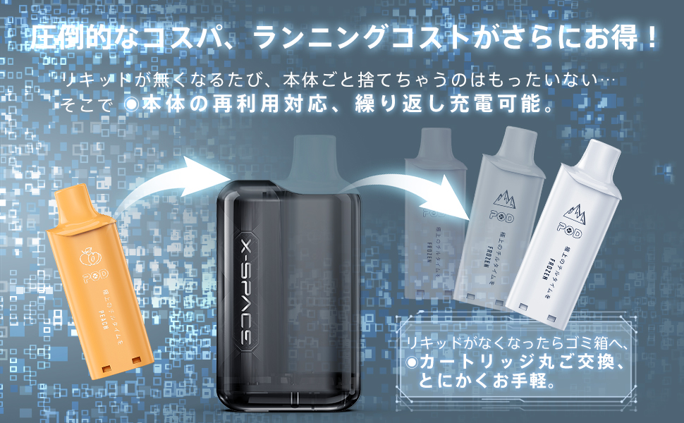 ・リキッドの補充や手間なしで、カートリッジを丸ごと交換するだけ。簡単で便利、使い勝手も抜群!