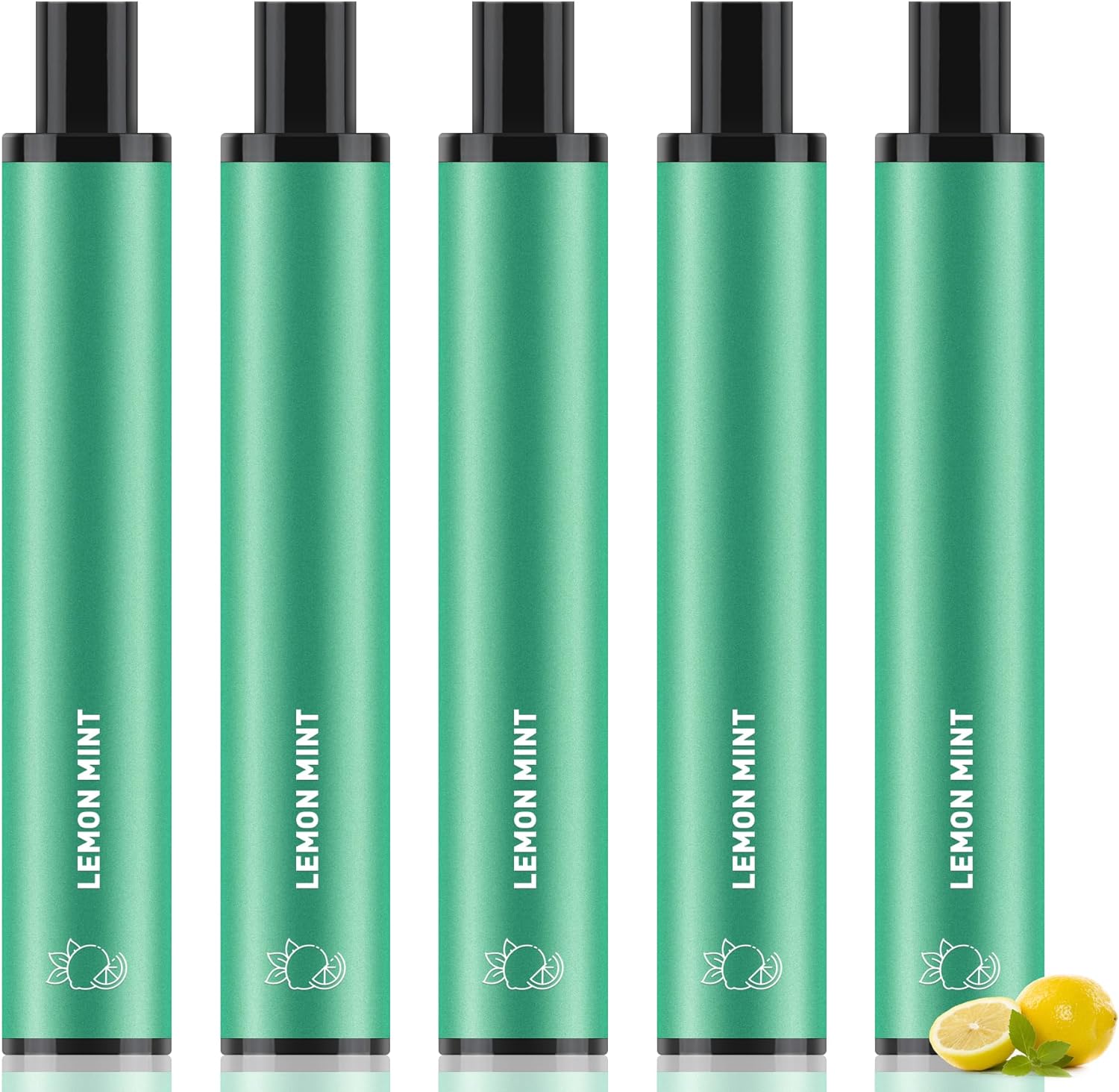 電子タバコ 使い捨て VAPE レモンミント 5本入 7500回吸引可能 持ち運び シーシャ 本体 たばこ タバコカプセル装着可 爆煙 ベイプ タバコ代替え品 ニコレス JT1