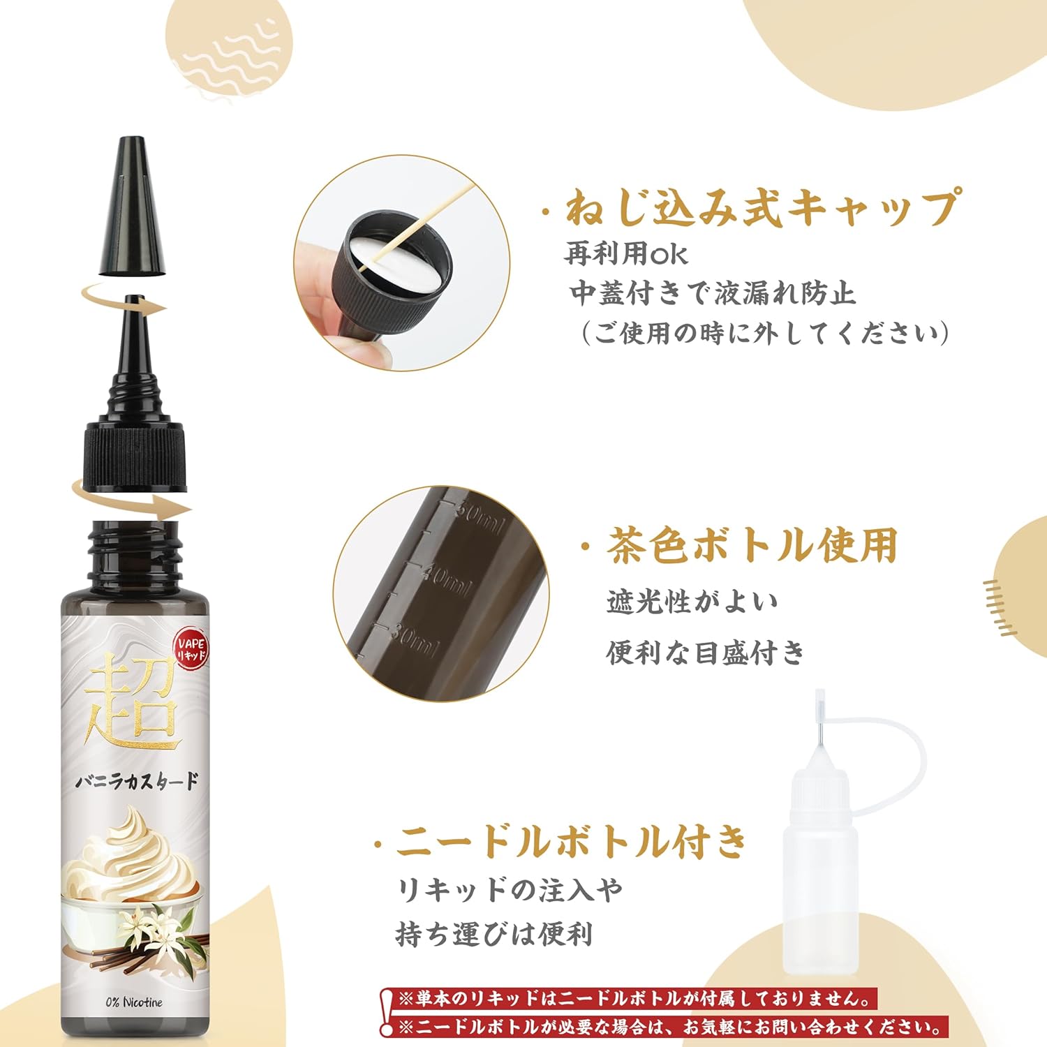 電子タバコ VAPE リキッド バニラカスタード 60ml特大容量 フレーバー 最新風味 4種から選択 着換え用 禁煙 ニコチンゼロ タールゼロ ベイプ 爆煙リキッド KINOE