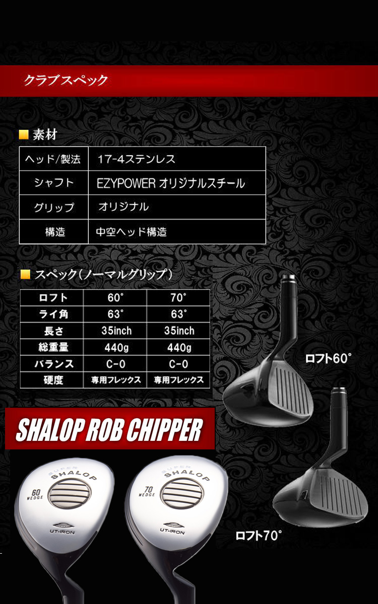 SHALOP シャロップ ロブチッパー ハイロフトチッパー(ロフト60°・70°)シャンクトップダフリ防止 「在庫限り」※ヘッドカバー無し